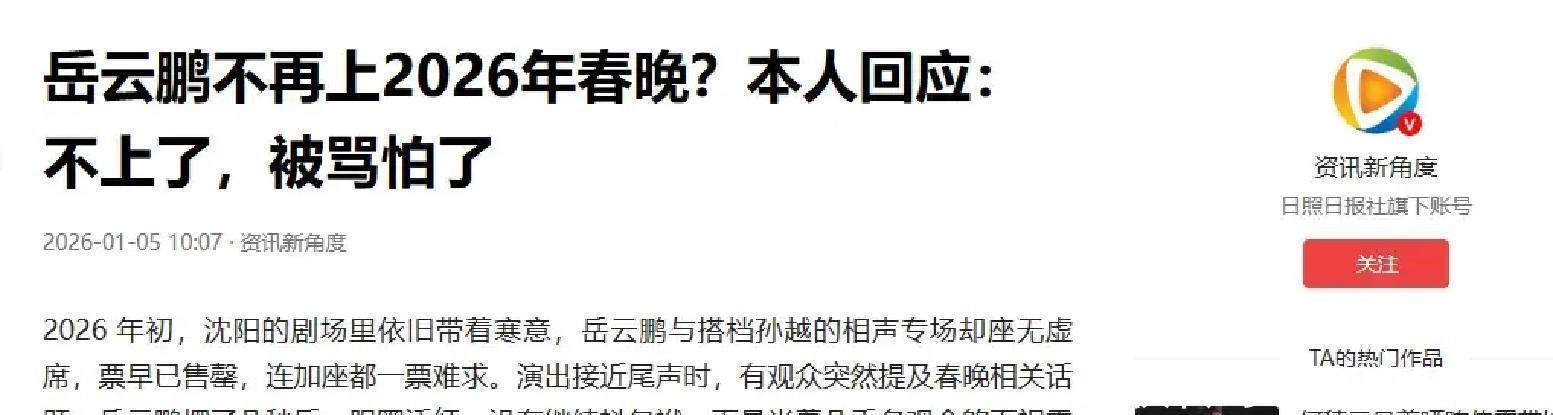 岳云鹏的职业生涯算是丰富多彩的,他作为相声演员,好几次站在春晚的舞台上,让不少人都很喜欢他,这几年他再春晚的表现褒贬不一,很多人不喜欢他那种被戏谑的表演风格,觉得缺乏创新,但是也有人觉得,相声本身就是表达方式多种多样,他能以轻松幽默的形式给大家带来快乐,也无须过分苛责,对于岳云鹏而言,如何把握个人表演风格的经典性和观众对内容创新的需求,似乎一直是个难题。提到岳云鹏与春晚的关系,就不能不提他和观众之间复杂的情感。曾经在春晚上最近他自己也主动宣布自己不会参加2026年的春晚,他宣布自己不会参加2026年春晚,被很多人认为是回应外界批评,岳云鹏也坦言春晚后一直面对的负面评价,给他带来了很大的压力。对此,也有不少网友表示理解,认为他勇敢的宣布自己退出春晚是保护自己的方式,也有不少网友表示他退出是因为自身已经无法达到春晚的高要求。
